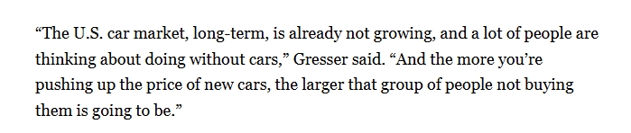 “从持久来看,美国汽车市场已不再增加,越是推高新车价钱,不买车的人就会越多。”美国《》旧事网报道截图!